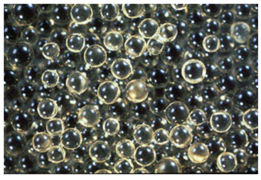圖1。微觀樹脂珠(20-50目)的磺化苯乙烯 - 二乙烯基苯強酸陽離子exhcanger的顯微鏡視圖。(由羅門哈斯公司提供。)